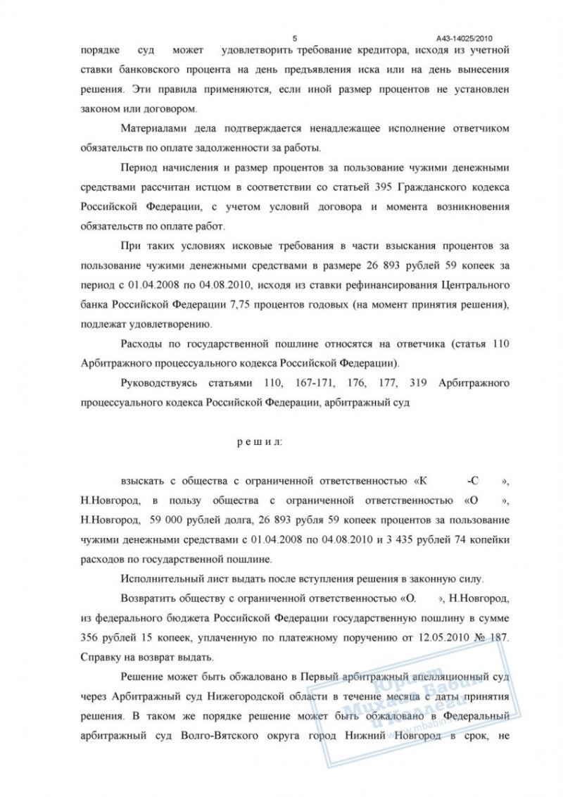 Взыскали 59 000 руб. долга и 27 000 руб. штрафа с недобросовестного заказчика