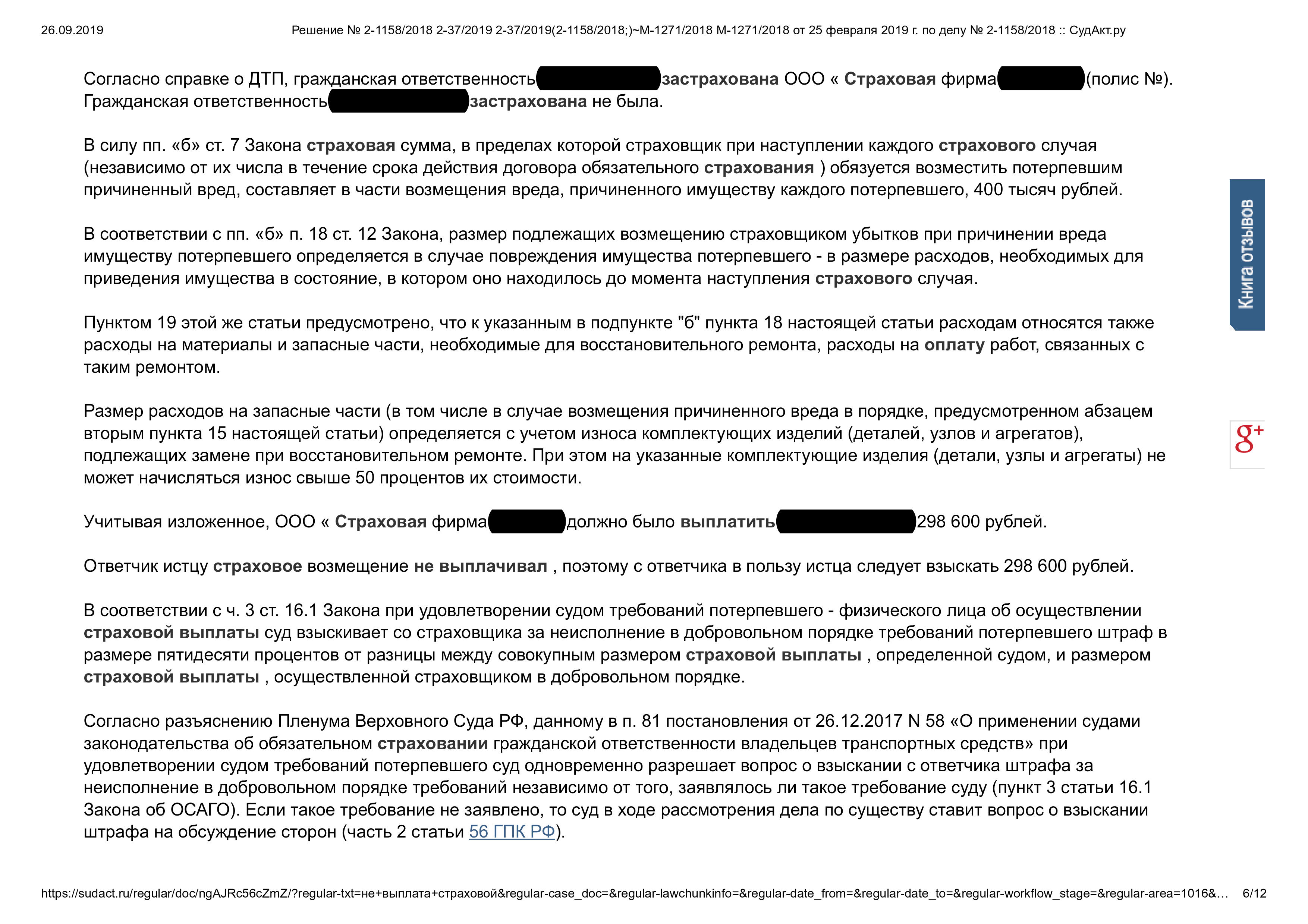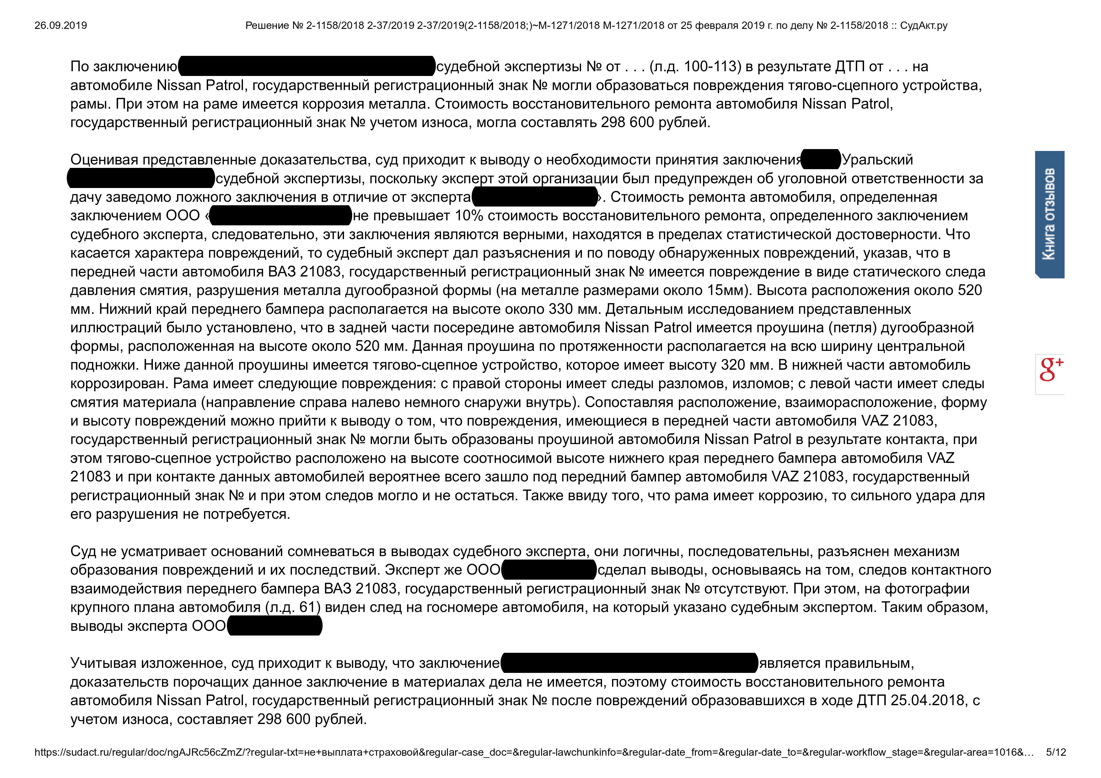 • Удовлетворен иск к страховой компании на ремонт автомобиля