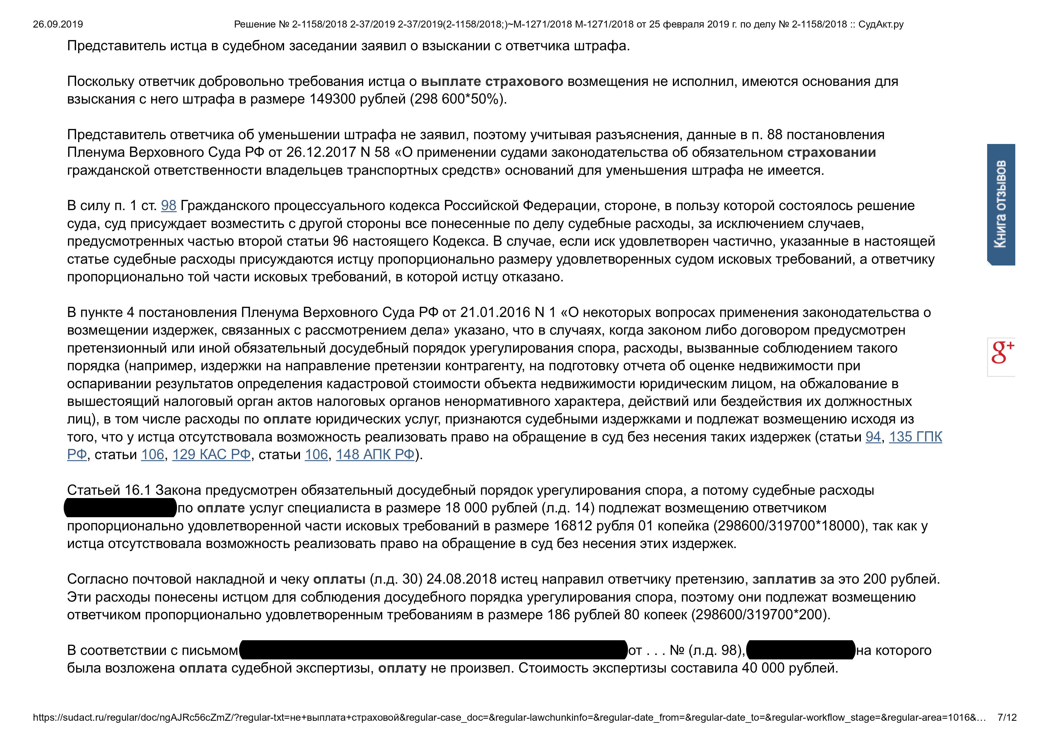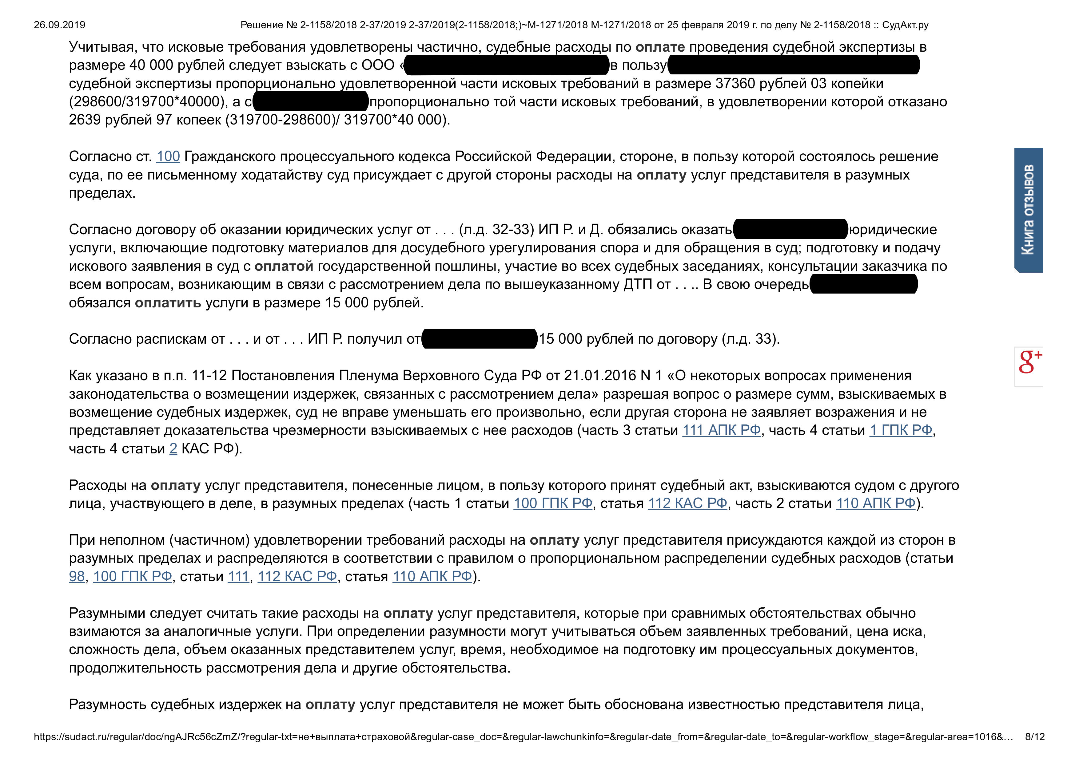 • Взыскание страховых возмещений расходов на экспертизу и представителя