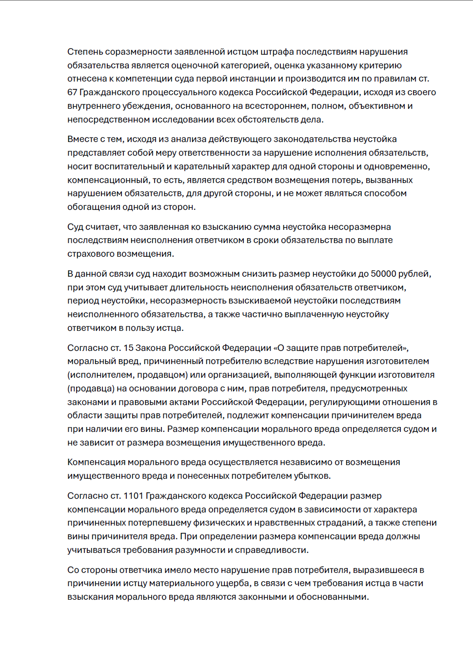 • неустойка - 50 000 руб.