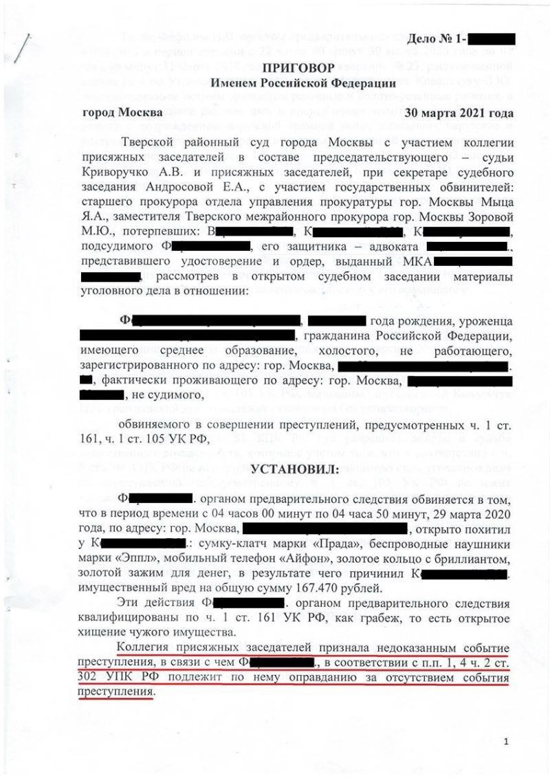 Оправдательный приговор по уголовному делу